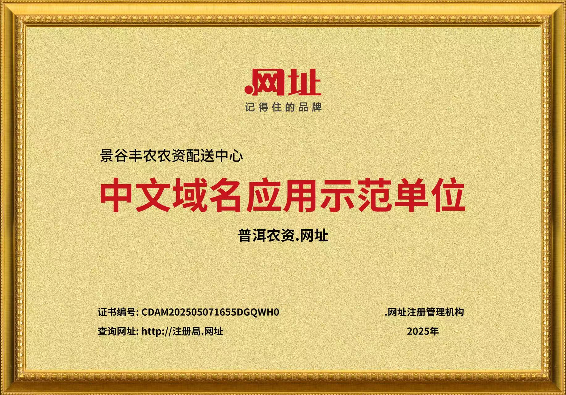 在数字化浪潮席卷农业领域的今天,网络品牌建设已成为农资企业深耕市场、服务农户的重要抓手。近日,深耕普洱市景谷傣族彝族自治县农业领域十余载的景谷丰农农资配送中心,正式完成“普洱农资.网址”中文域名注册,这一举措不仅为企业构建起专属的数字化品牌标识,更标志着其在“互联网+农资”服务转型道路上迈出关键一步,将以更便捷、高效的线上服务体系,赋能区域农业高质量发展。